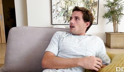 Мамка с большими сиськами раздвигает ноги для вагинала с молодым пасынком