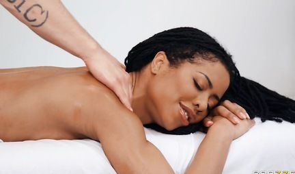 Мулатка после массажа раздвигает свои ноги для порки с массажистом