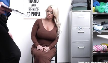 Иногда в наш магазин залетают такие птички, что их просто так не расколешь, да и не очень хочется от слова совсем, но долг и служба как говорится зовет. У вас там буфера или бидоны? Ворованное туда прячете? Спрашивает охранник у зрелой и весьма сексуальной блондинки и понимает всей душой, что не очень так ему и хочется трахать данное чудовище, но традиции тут похлеще, чем в одной или даже не одной горной республике на Северном Кавказе. Снимай платье, трусы, погнали.