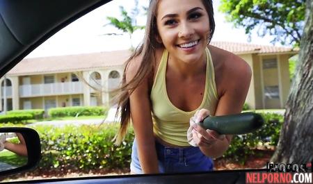 Привлекательная сучка явно не из самых мажорных на тамошнем районе, потому, прикупив в ближайшей лавке простой огурец, она торопится с ним домой, чтобы перекусить. Эту картину маслом рисует проезжающий пикапер, который предлагает милашке лавандос за то чтобы она побаловалась огурцом и его концом в совокупности. Без долгих сомнений телка соглашается!