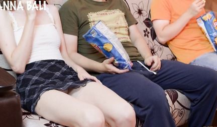 Конечно, быть кинолюбителем совсем не грех, но если ты любишь фильмы больше чем свою подругу, то с тобой может приключиться что-то подобное. Так, сожитель симпатичной девушки пригласил друга посмотреть фильм втроем. Но девица сильно запала на гостя и вполне позволила не только соблазнить себя на минет, но и жестко отодрать с окончанием на лицо. Так что пусть выбирает что для него важнее...
