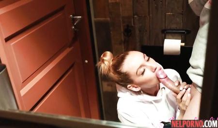Русская студентка на спор делает минет в туалете кафе другу своего парня