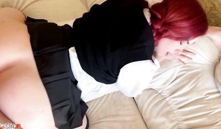 Коварству парня русской рыжей девушки Свити Фокс нет предела. Дождавшись, когда его подруга уснет в кресле, он самым коварным образом достал свой член и запихнул его крошке в рот. Ну тем самым он дико возбудил красавицу, которая сегодня как раз хотела отдохнуть от секса. Ну а такак в запасе у девули был еще и дилдо, то у рыжухи получилась почти что групповуха.